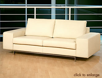 A single sofa with well defined volumes and soft yet rigorous lines. Surrounds a definitive accent by its chrome metal base.